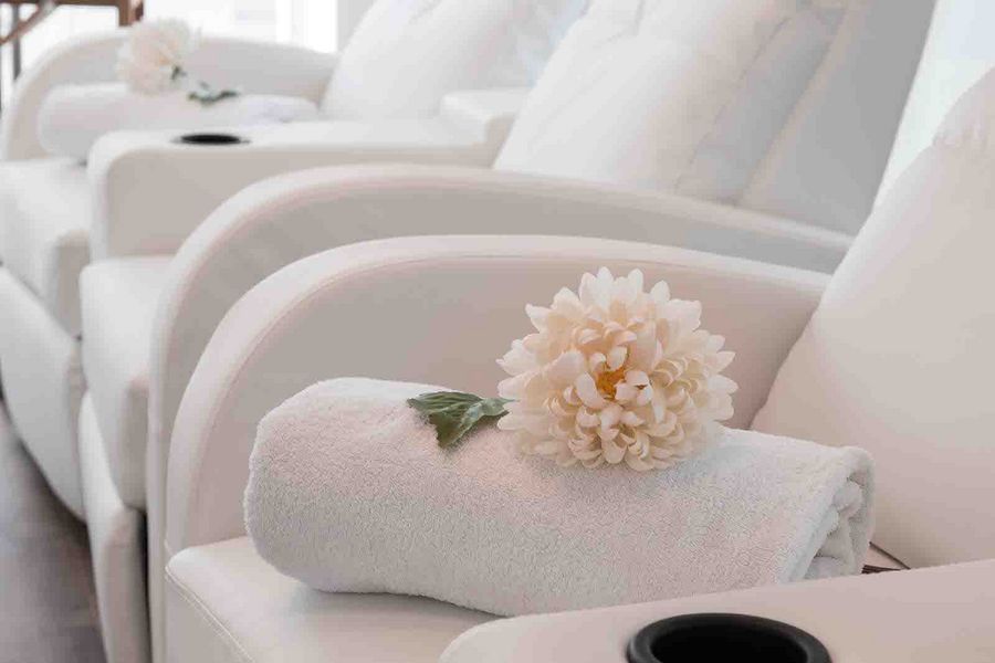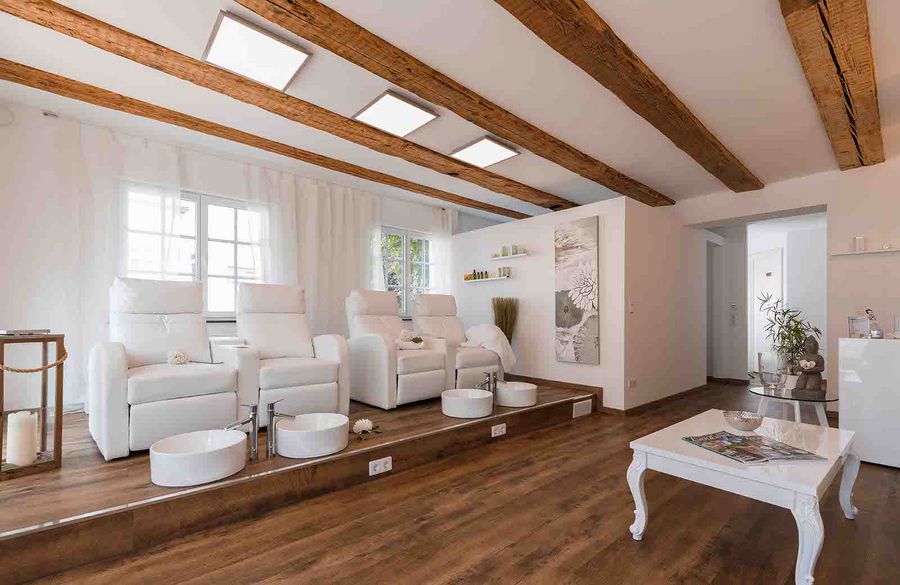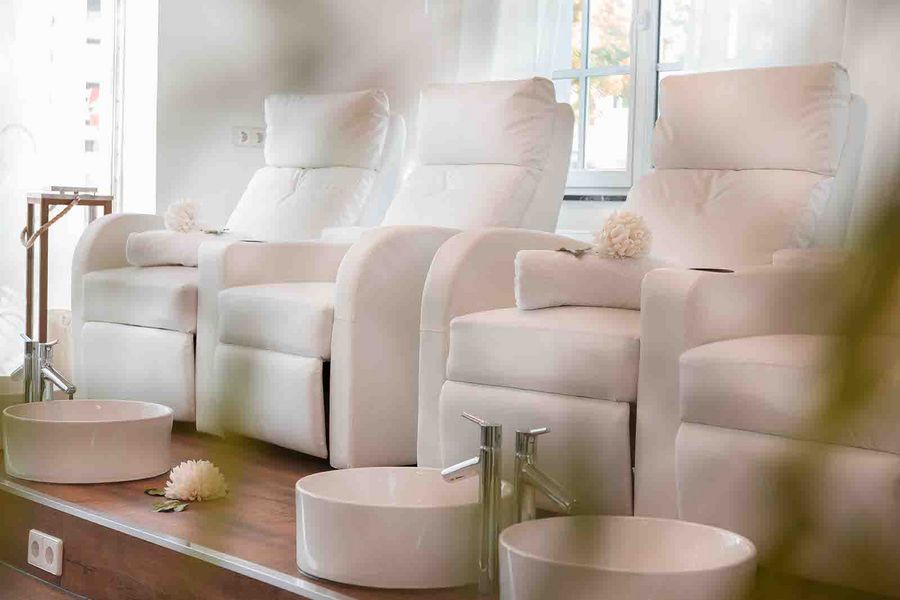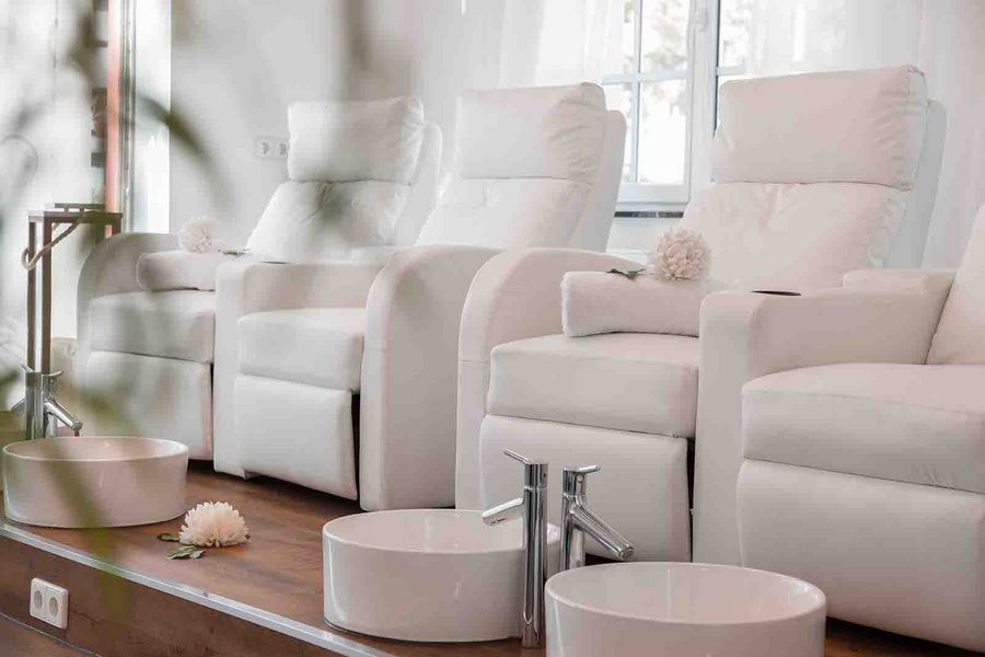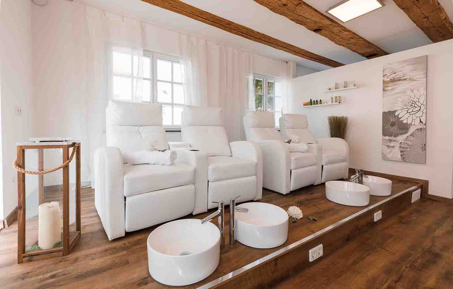 nach einer klassischen Fußpflege werden Sie mit heißen Steinen am Nacken verwöhnt.