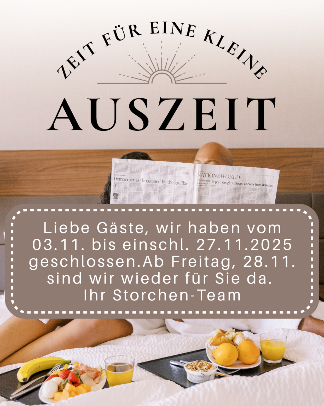 Liebe Gäste, wir gönnen uns von 03.11.2025 bis 27.11.2025 eine kleine Pause