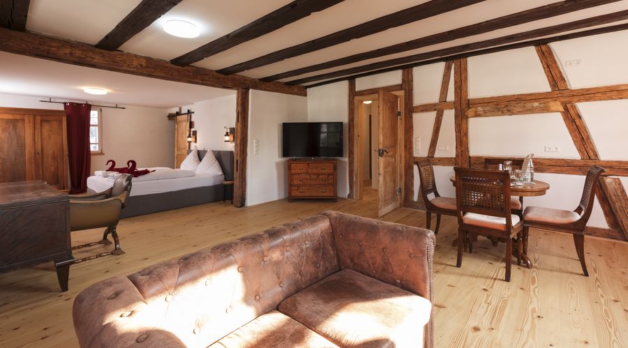 Unser 3-Zimmer Bio-Appartement bietet mit ca. 90 m2 genügend Platz für 2 bis 4 Personen und einem Baby/Kleinkind im Gitterbett. Es liegt im Haupthaus im historischem Fachwerk aus dem Jahr 1641. Im Juli 2018 haben wir die Wohnung nach ökologischem Standard renoviert, die Wände mit Kalk, Kiesel und Sand verputzt, den Boden mit geöltem Tanneholz ausgestattet. Moderne und antike Möbel verleihen der Wohnung einen besonderen Charme.